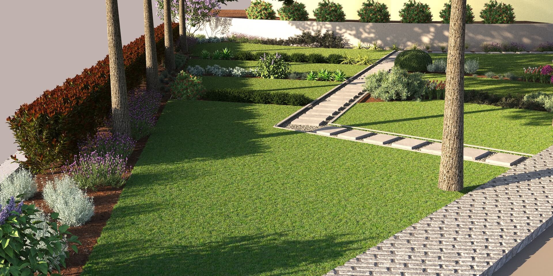 Első lépésként centiről centire megterveztük az adott terület elrendezését. Fontos szempont volt számunkra, hogy a meglévő fákat és bokrokat mind megtartsuk, hiszen amellett, hogy gyönyörűek és árnyékot adnak, rengeteg apró állat lakik rajtuk, akiket nem akartunk zavarni.